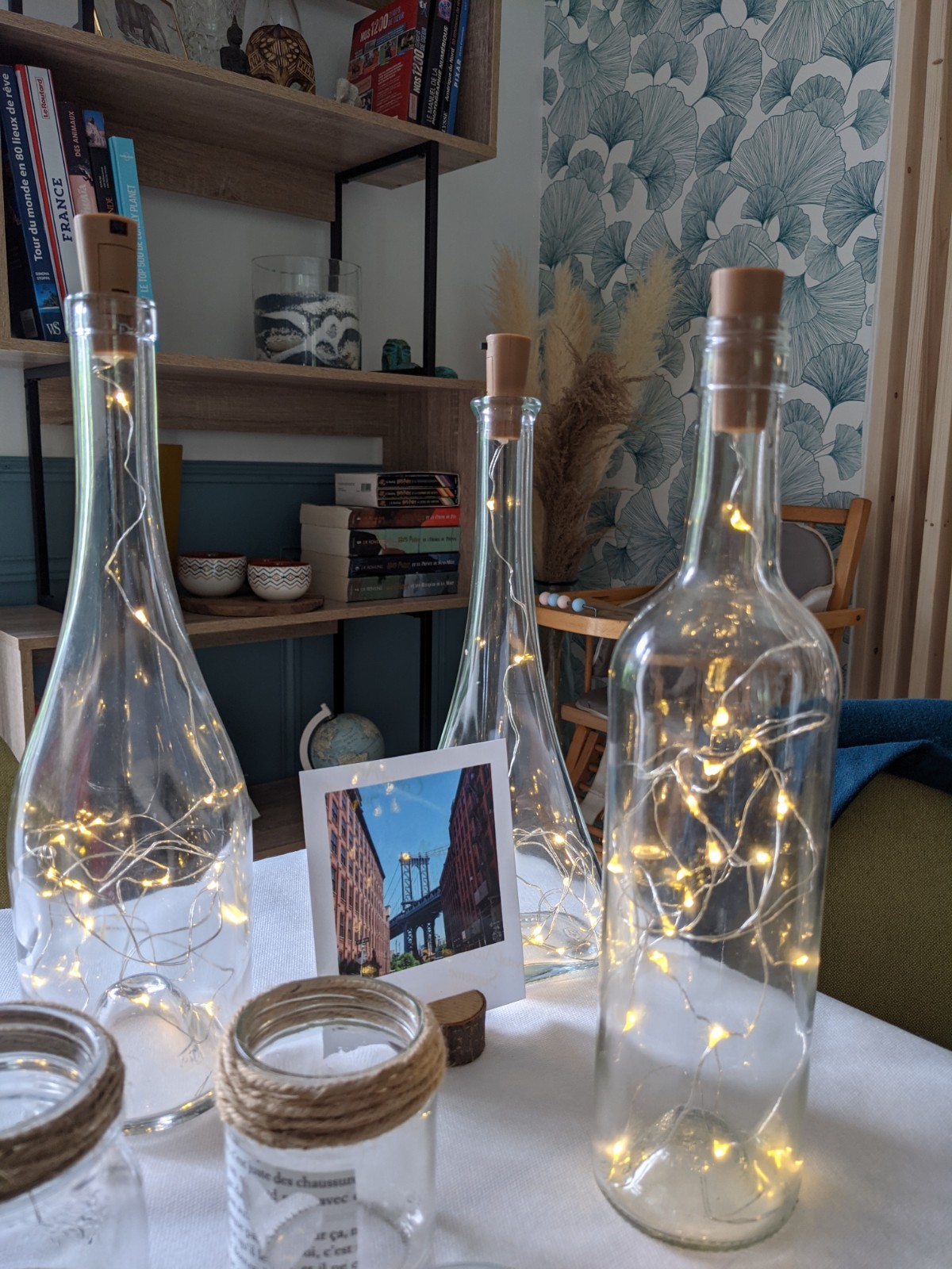 Nous vous proposons différents éléments de décoration, vintages et plus actuelles, des caisses en bois, des dames-jeanne, une valise ancienne, des miroirs.