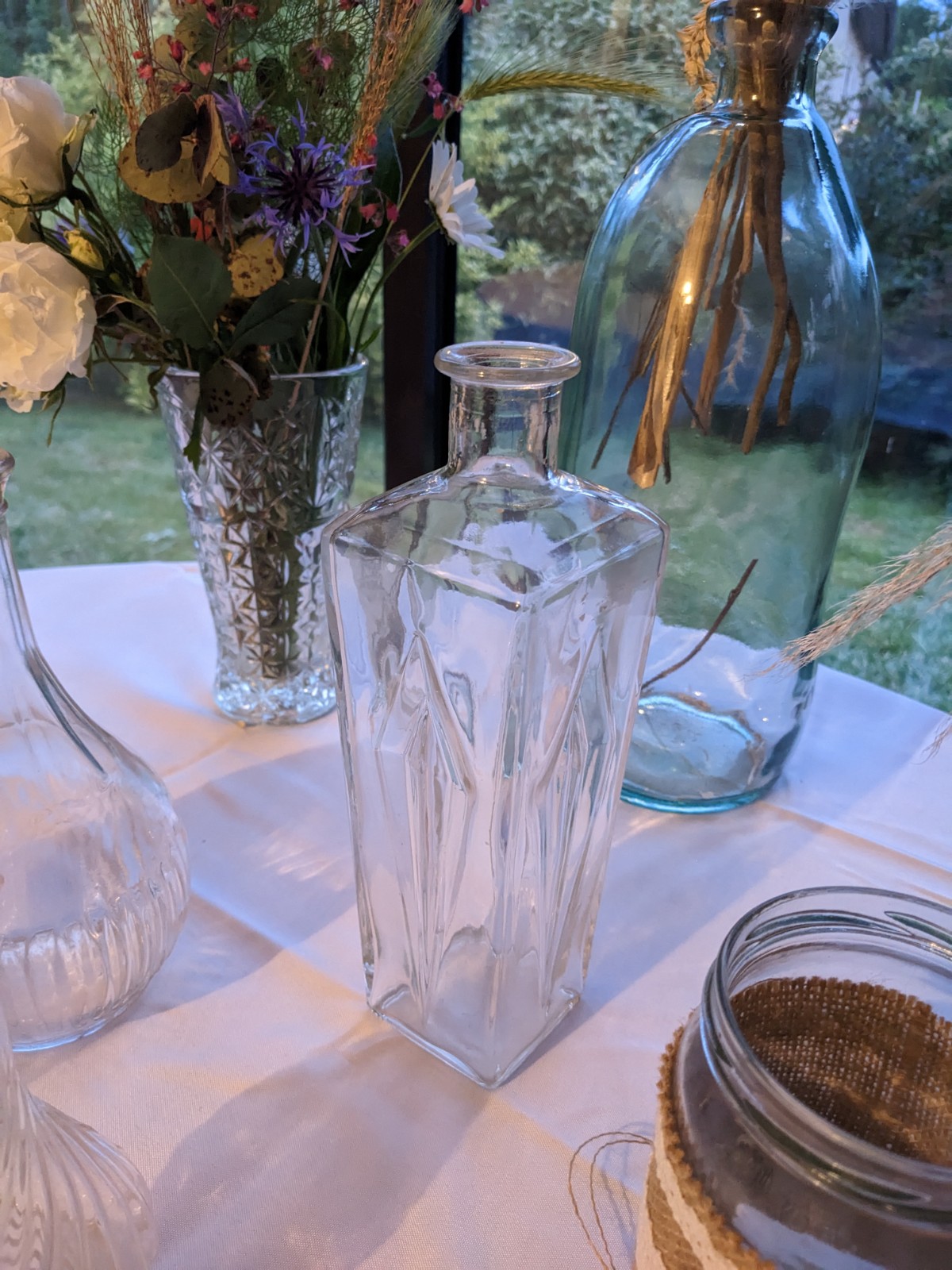 Nous possédons une large gamme de vases, dépareillés, petits, grands, d’anciennes carafes à whisky, des pots customisés.